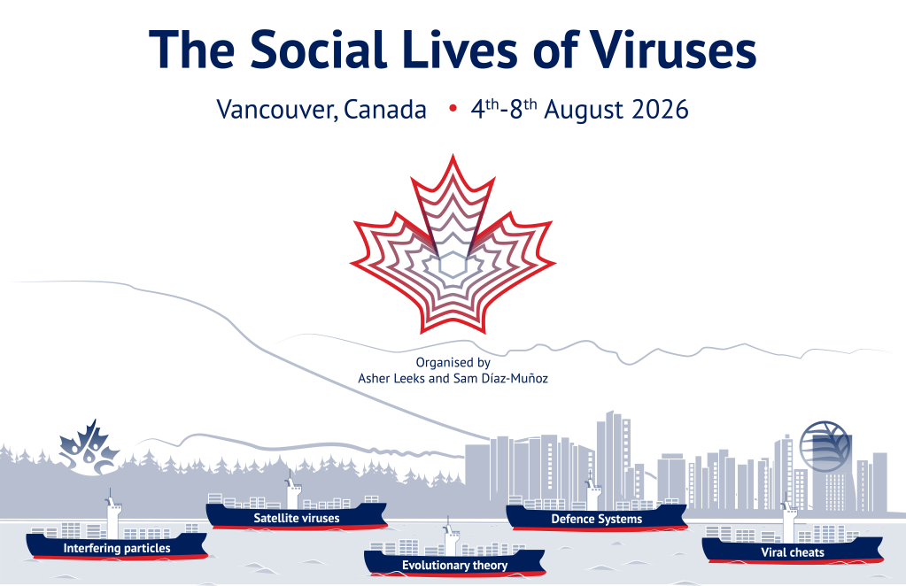 Professor Sam Díaz-Muñoz and I co-organise biannual meetings dedicated to studying social evolution in viruses. These are small meetings of 50-75 participants, in which we bring together virologists, evolutionary biologists, and other researchers who bring diverse perspectives to the study of virus-virus interactions.